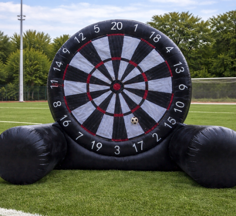 Die riesige aufblasbare Dartscheibe kombiniert Fußball, Geschicklichkeit und jede Menge Spaß - ein echter Publikumsmagnet für Groß und Klein.